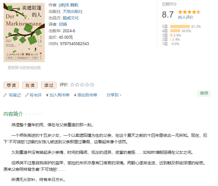 2024-06《卖遮阳篷的人》【豆瓣评分8.9】
